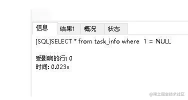 这个时候,数据库不知道这两个值(1 和 NULL)是否相等,因此会认定为“NULL”或“未知”,所以它也不会返回任何数据。
