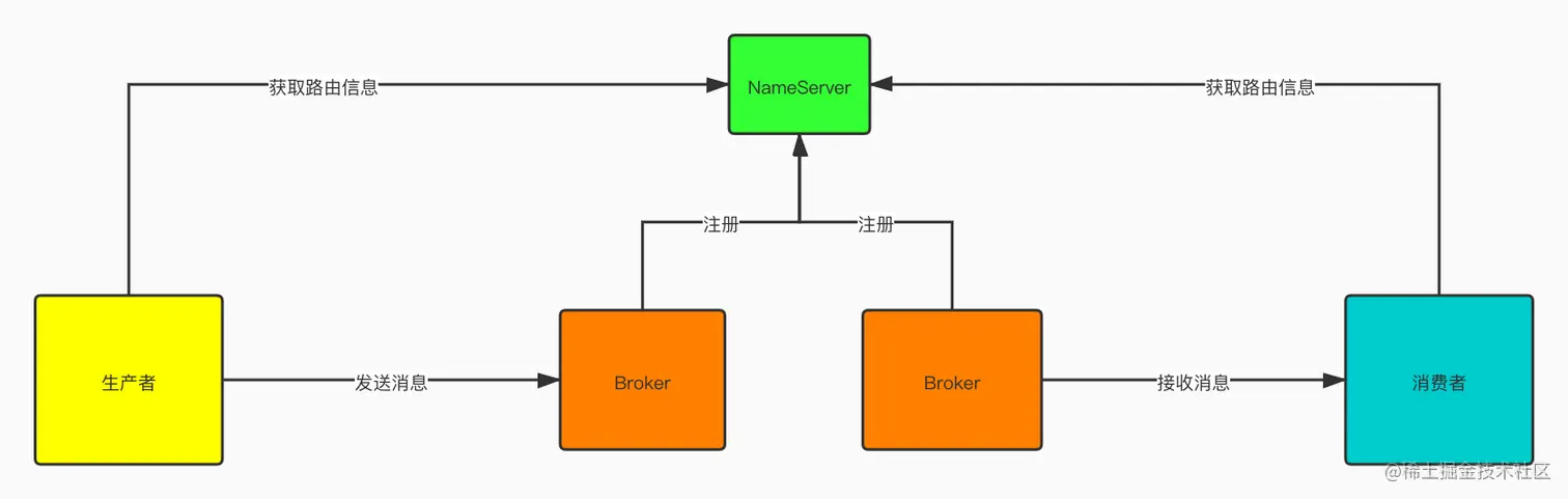 - NameServer:管理broker、topic的路由信息。可以类比为:路由器