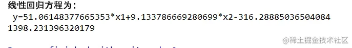 print('线性回归方程为:', '\n', result) # 输出线性回归方程