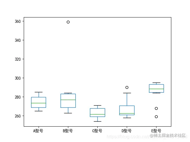 df = df[['A型号','B型号','C型号','D型号','E型号']] # 选取'A型号','B型号','C型号','D型号','E型号'列的数据用于数据分析
