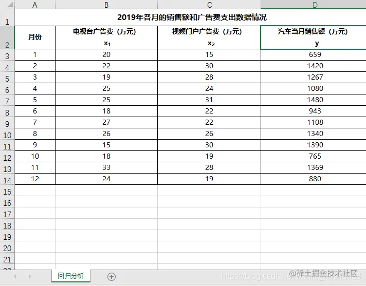 df.columns = ['月份', '电视台广告费', '视频门户广告费', '汽车当月销售额']