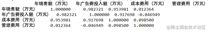 result = df.corr() # 计算任意两个变量之间的相关系数