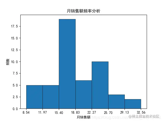 plt.title('月销售额频率分析') # 设置直方图的图表标题