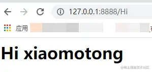 运行服务器代码,在浏览器中输入127.0.0.1:8888/Hi或者localhost:8888/Hi,即可看到效果