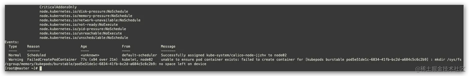 - 查看详细信息,查看node2节点没有存储空间,cgroup泄露