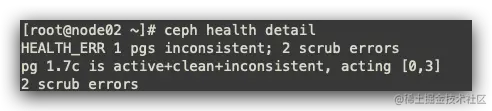 目前查看到ceph集群异常,可能导致node2节点cgroup泄露异常,进行手动修复ceph集群。