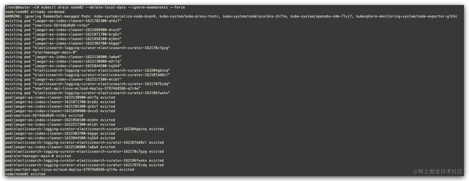 kubectl drain node02 --delete-local-data --ignore-daemonsets --force
