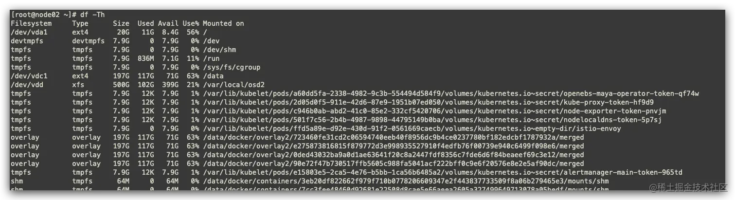 - 登陆node2查看服务器存储信息,目前空间还很充足