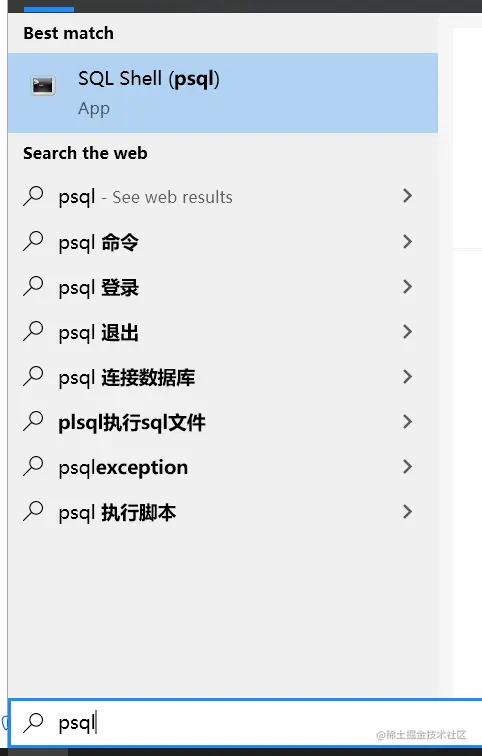 Windows下在开始菜单——PostgreSQL 12下,或者直接在开始菜单处搜索psql