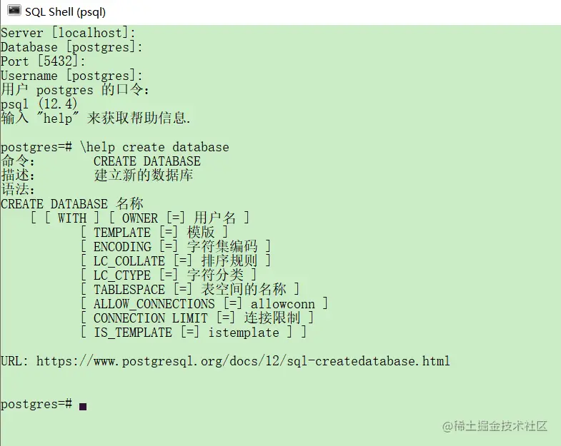执行psql -U postgres使用plsql登陆PostgreSQL,出现postgres=#表示登陆连接成功