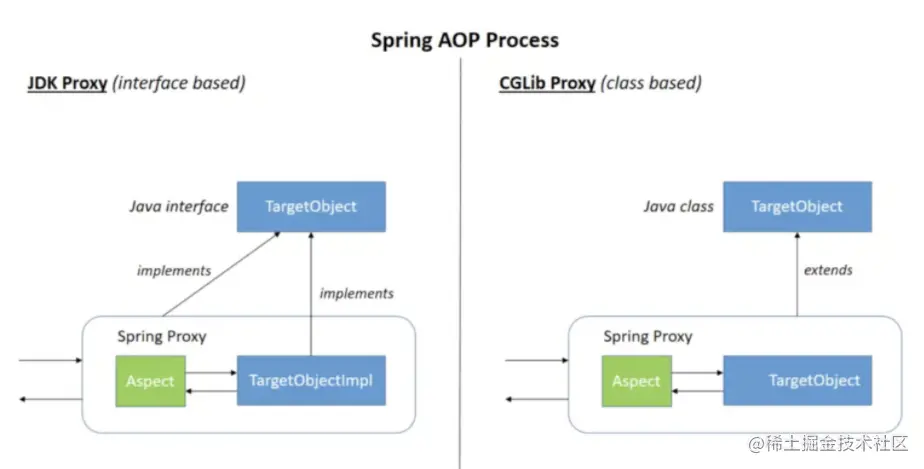 - JDK动态代理:Spring AOP的首选方法。 每当目标对象实现一个接口时,就会使用JDK动态代理。目标对象必须实现接口