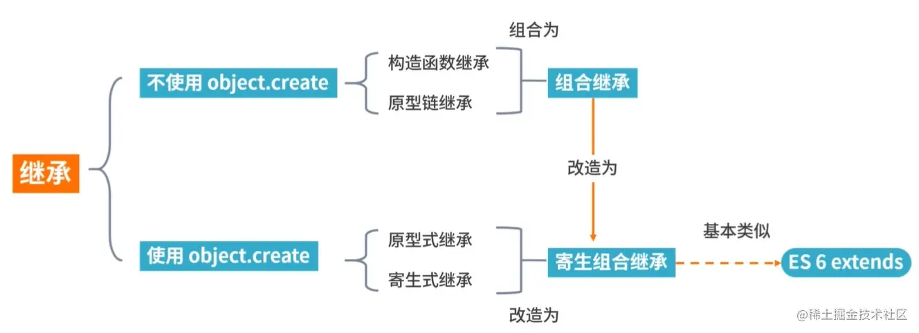 - Class extends 继承是 ES6 的,本质上是寄生组合式继承的一种运用