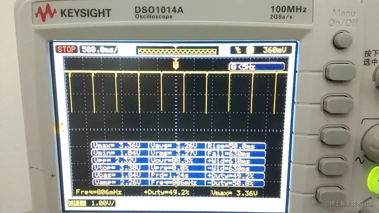 通过复位引脚波形可以看出,在其它复位情况发生时,复位引脚会有一个很短的负脉冲。说明其他复位源产生时,复位引脚电平也会变化。看来上面程序检测是正确的。