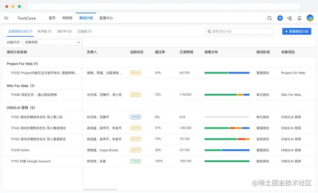 ONES TestCase 可以建立测试计划,计划可以从用例库中挑选在本轮测试中需要用到的用例。且测试计划可以和项目,或者迭代进行关联,以便后续发现Bug的时候可以一键提交到对应的项目,或者迭代进行修复。
