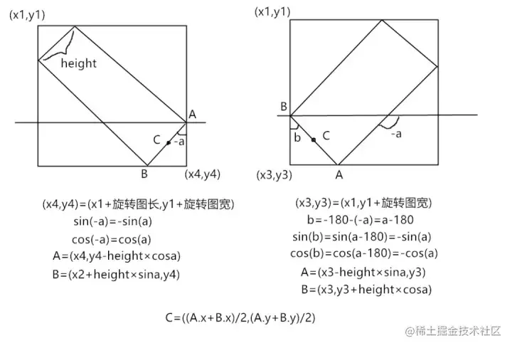 这里的 (x1-width, y1-height/2) 其实才是上图中的 (x1, y1)所以最后我们加入相关算法代码,效果就比较完美了