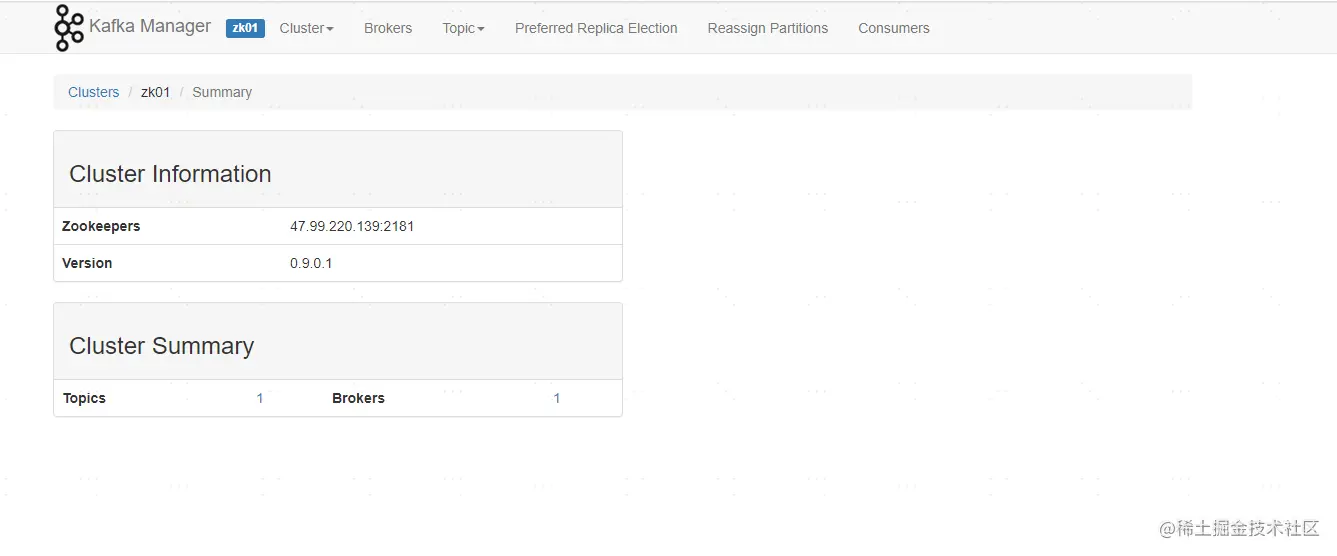 docker run -d --name kafka-manager \--link zookeeper:zookeeper \--link kafka:kafka -p 9001:9000 \--restart=always \--env ZK_HOSTS=zookeeper:2181 \sheepkiller/kafka-manager