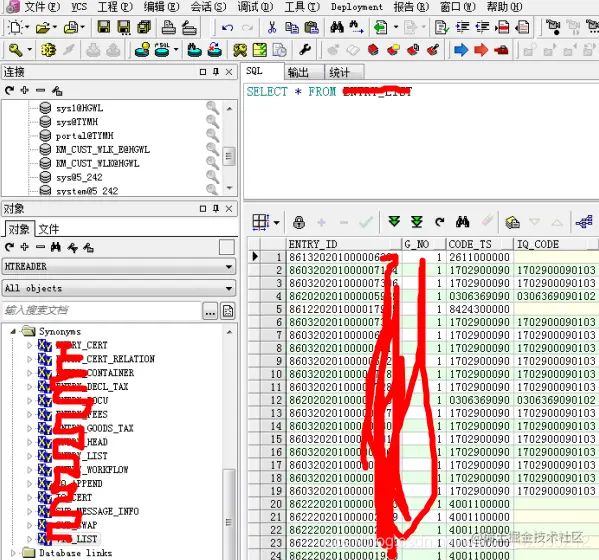 在只读账号HTREADER端执行:添加显示各个表信息;在SYSNONYM目录下,tables目录下无显示