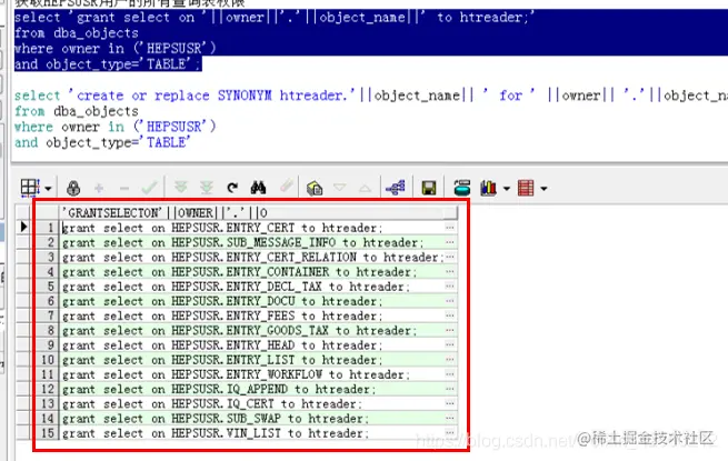 在原账号HEPSUSR下执行,将原账号的查询权限 赋值给新账号