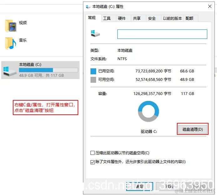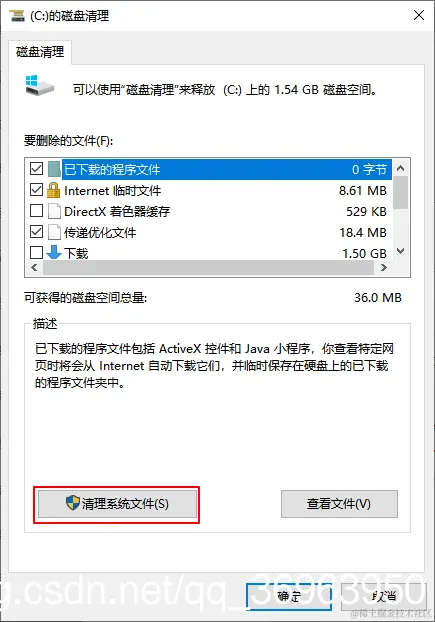 步骤二:打开磁盘清理窗口,点击清理系统文件,如图:
