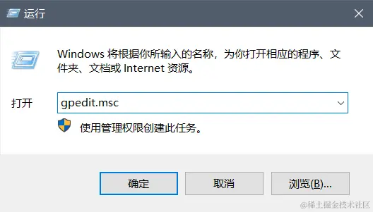 解决:修改组策略设置(适用于windows专业版以上)