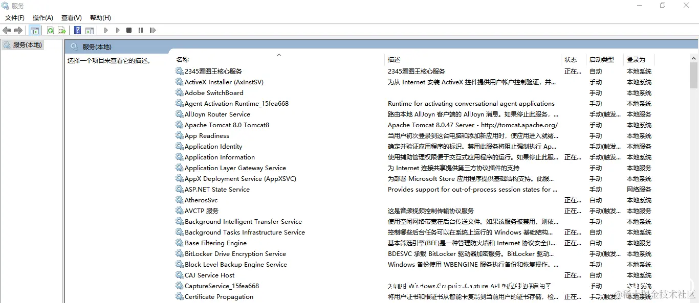 注意,打开服务的方式有很多,这里只是提供其中一种,读者也可以用其他方式打开。