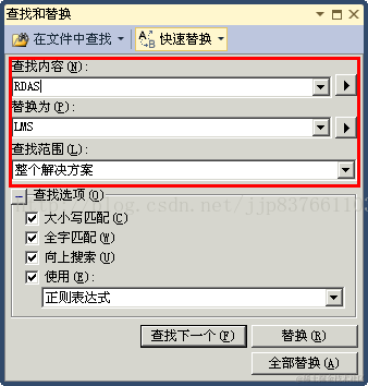 - 替换整个项目或解决方案中的出现该名称的地方。