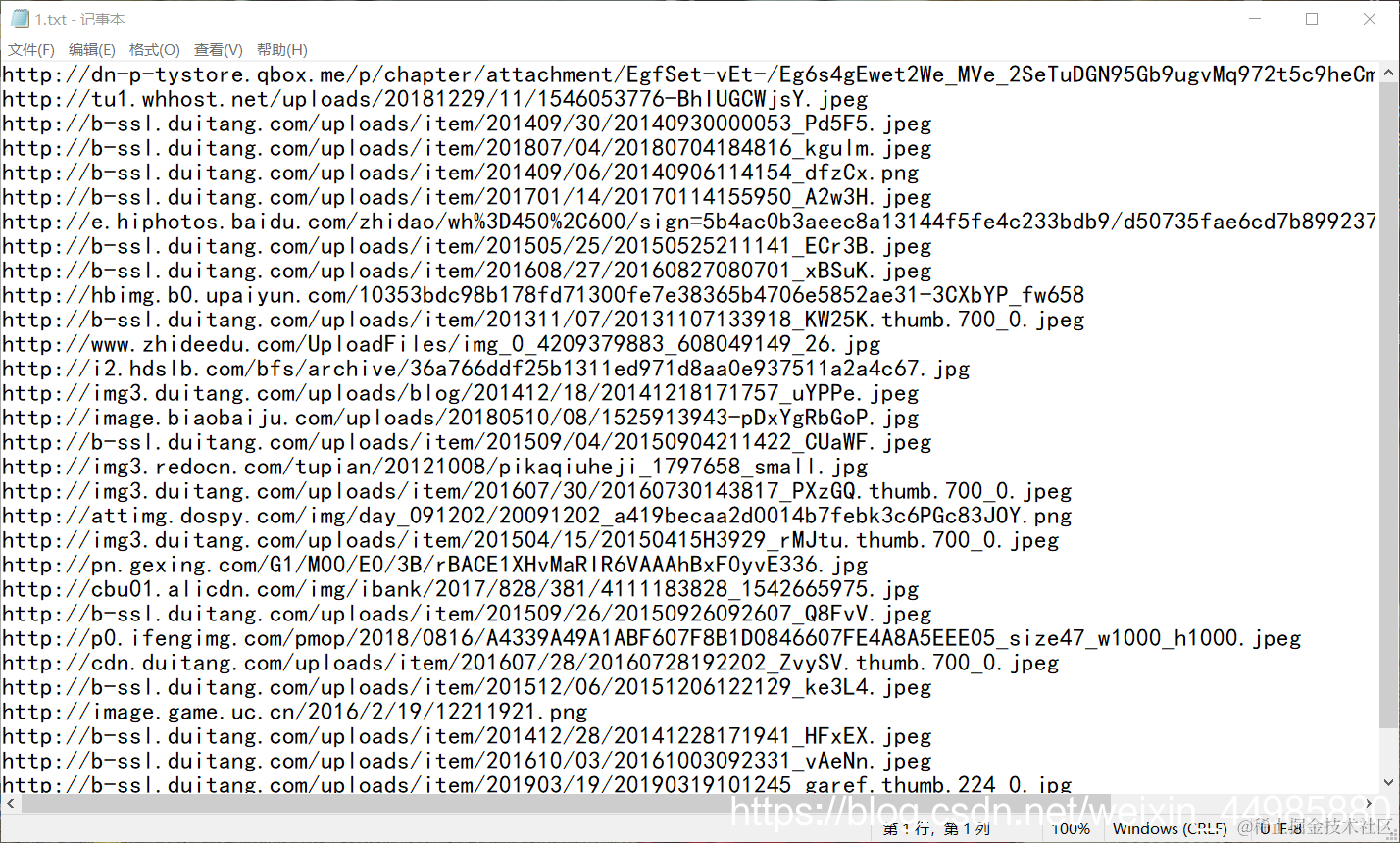 接下来我们用几行代码对我们通过正在表达式匹配到的图片链接进行一下验证,将匹配到的所有链接写入txt文件: