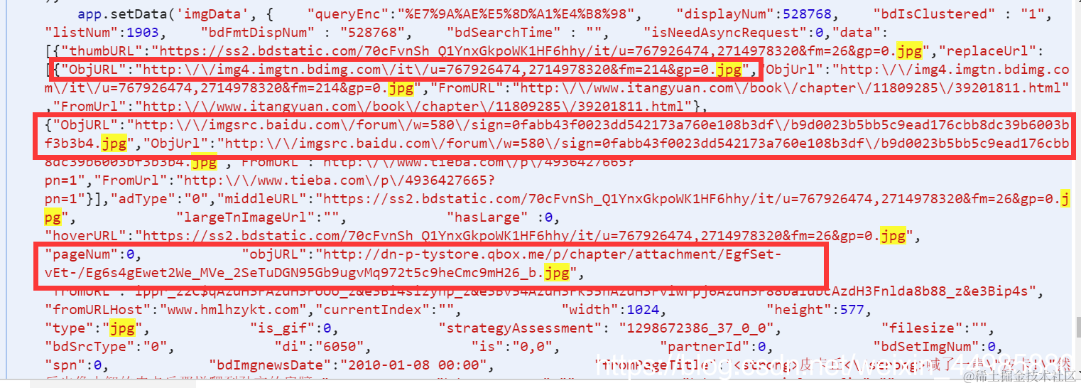 所以我们就可以暂时的推断出百度图片中jpg图片的通用格式为“”OpjURL”:XXXX””,