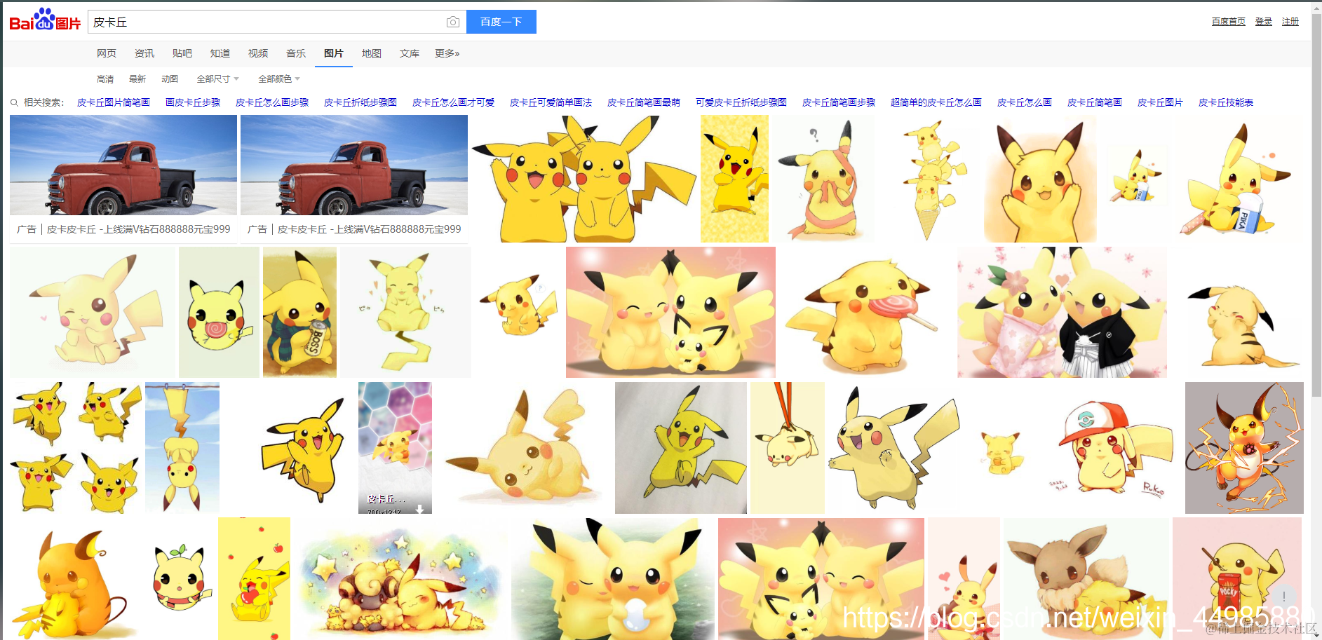 - 获取百度图片中“皮卡丘图片”的网页链接