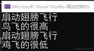 Console.WriteLine("扇动翅膀飞行");