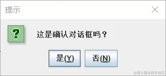 JOptionPane.showConfirmDialog(null,"这是确认对话框吗?","提示",JOptionPane.OK_OPTION,JOptionPane.QUESTION_MESSAGE); //确认对话框