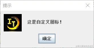 JOptionPane.showMessageDialog(null, "这是自定义图标!","提示",JOptionPane.WARNING_MESSAGE,icon);