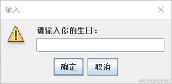 JOptionPane.showInputDialog(null,"请输入你的生日:","输入",JOptionPane.WARNING_MESSAGE); //输入对话框