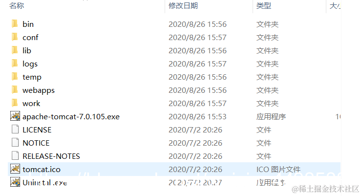 在Tomcat服务器搭建完成之后,会在我们的安装路径下出现很多如下的文件夹:
