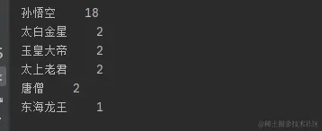 接下来和大家演示一个相关的实例,采用jieba库的中文分词技术,对“西游记”中大闹天宫一节中,各位人物的出场次数进行统计,