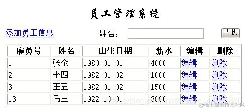 最后是我使用QueryRunner类和ResultHandler接口实现的一个简单的员工信息管理系统,可以实现基本的员工信息的增删改查操作,效果如下: