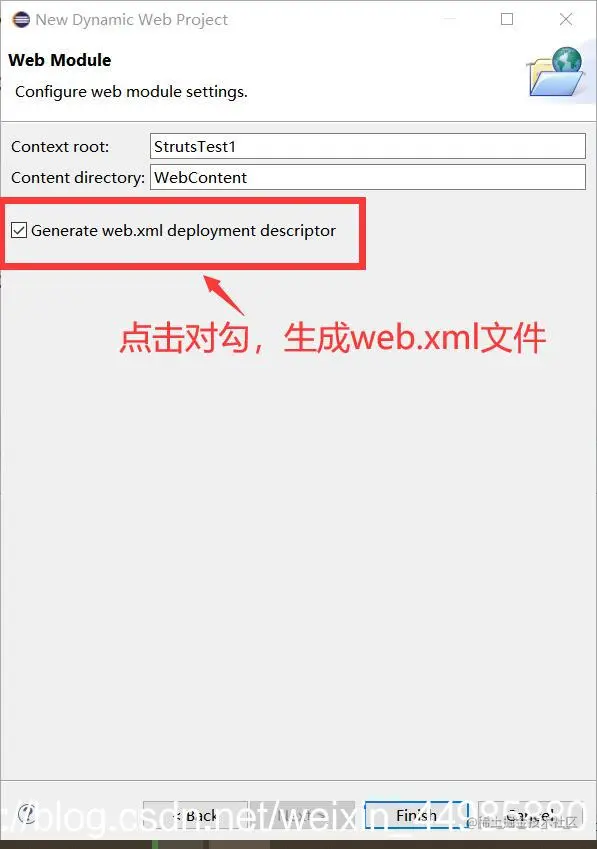 在这一步记得勾选上生成web.xml文件,否则之后还要自己在WEB-INF下手动创建