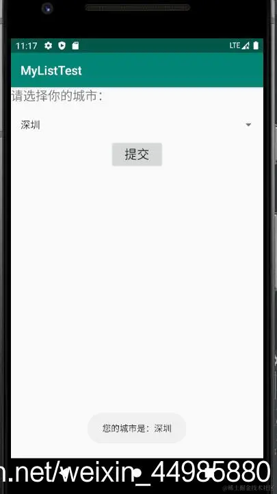Toast.makeText(MainActivity.this,"您的城市是:" + info,Toast.LENGTH_LONG).show();