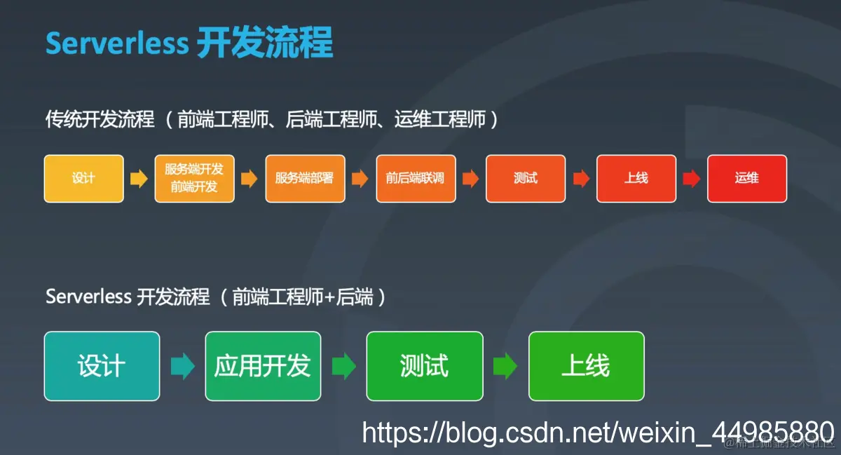 对于真正的serverless开发,到底具有哪些实际的优势?先以传统的前端开发和基于serverless架构的前端开发为例来看。