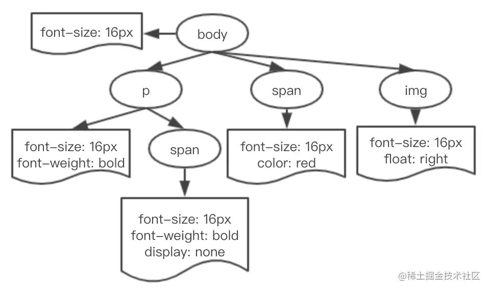 通过遍历两个树结构,浏览器依次计算每个节点的大小,位置,颜色等样式,合并构造出渲染树。