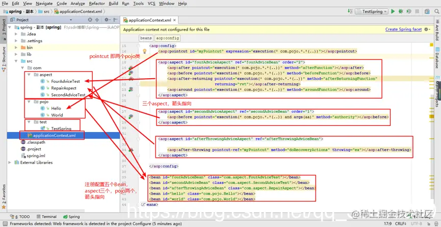 <bean id="fourAdviceBean" class="com.aspect.FourAdviceTest"></bean>