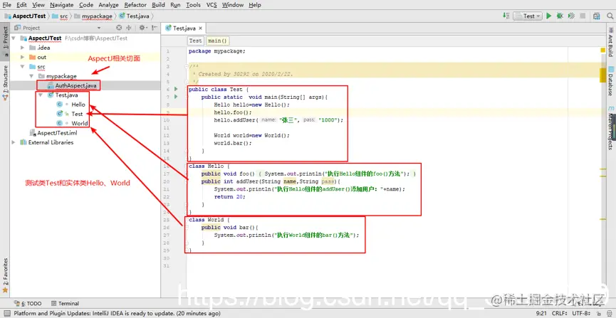 给出解释,为节约篇幅,仅解释 hello.addUser(“小明”,“1000”);和hello._functionException(5);两个就好了,一个带两个参数,一个带异常,hello.foo();和world.bar(); 都是一样的,解释如下图: