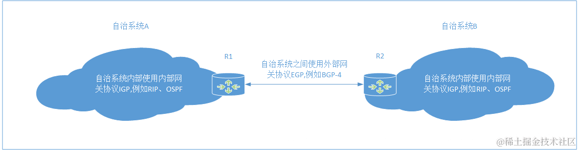 1)一个自治系统内部所使用的路由选择协议称为内部网关协议(IGP),也称为域内路由选 择,具体的协议有RIP和OSPF等。
