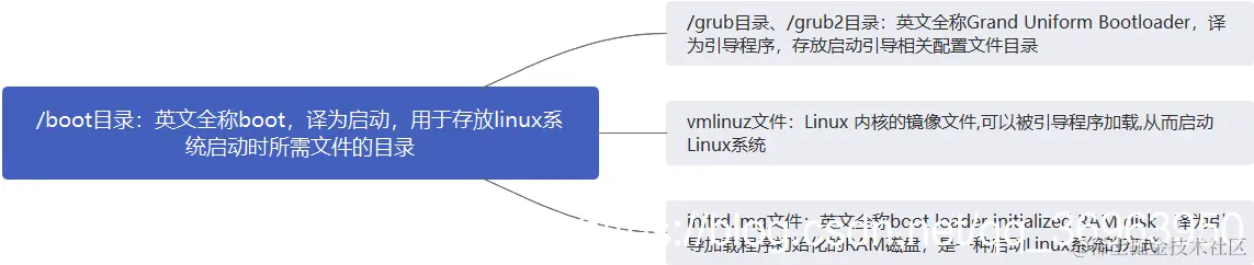 1、内容和作用:用于存放linux系统启动时所需文件的目录