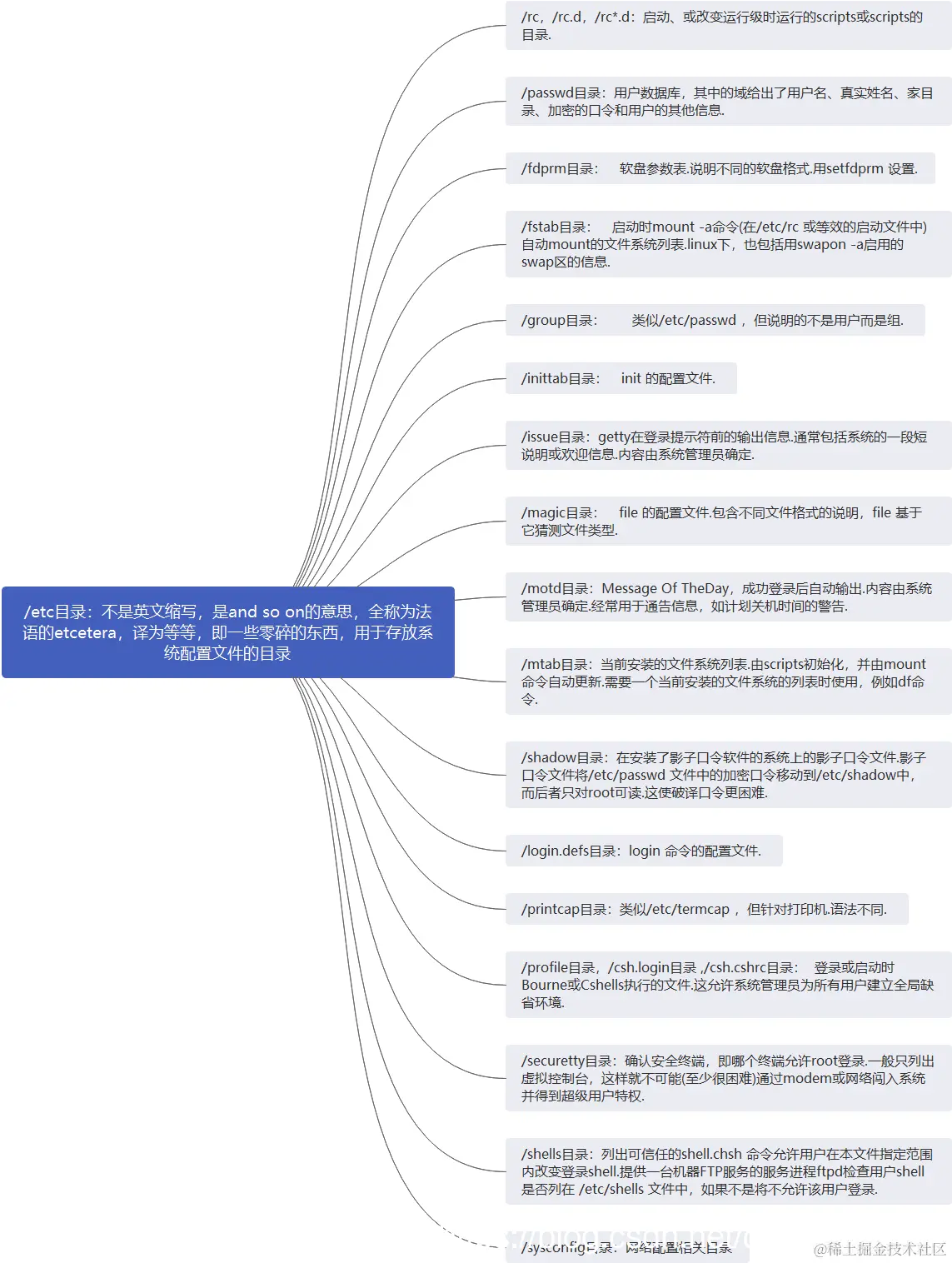 1、内容和作用:用于存放系统配置文件的目录,不建议在此目录下存放可执行文件.