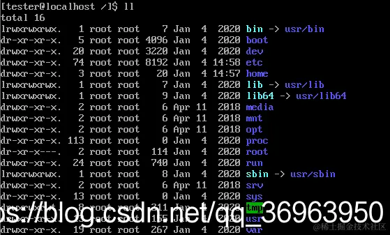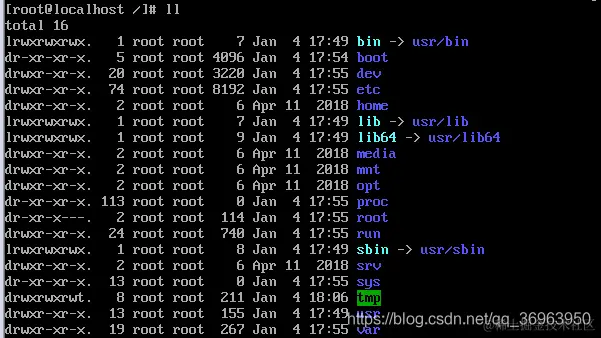 如图,这个笔者刚刚重新安装的CentOS7环境,两种用户登录后(ps:为“#”表示root用户,为“$”表示普通用户),蓝色表示目录.