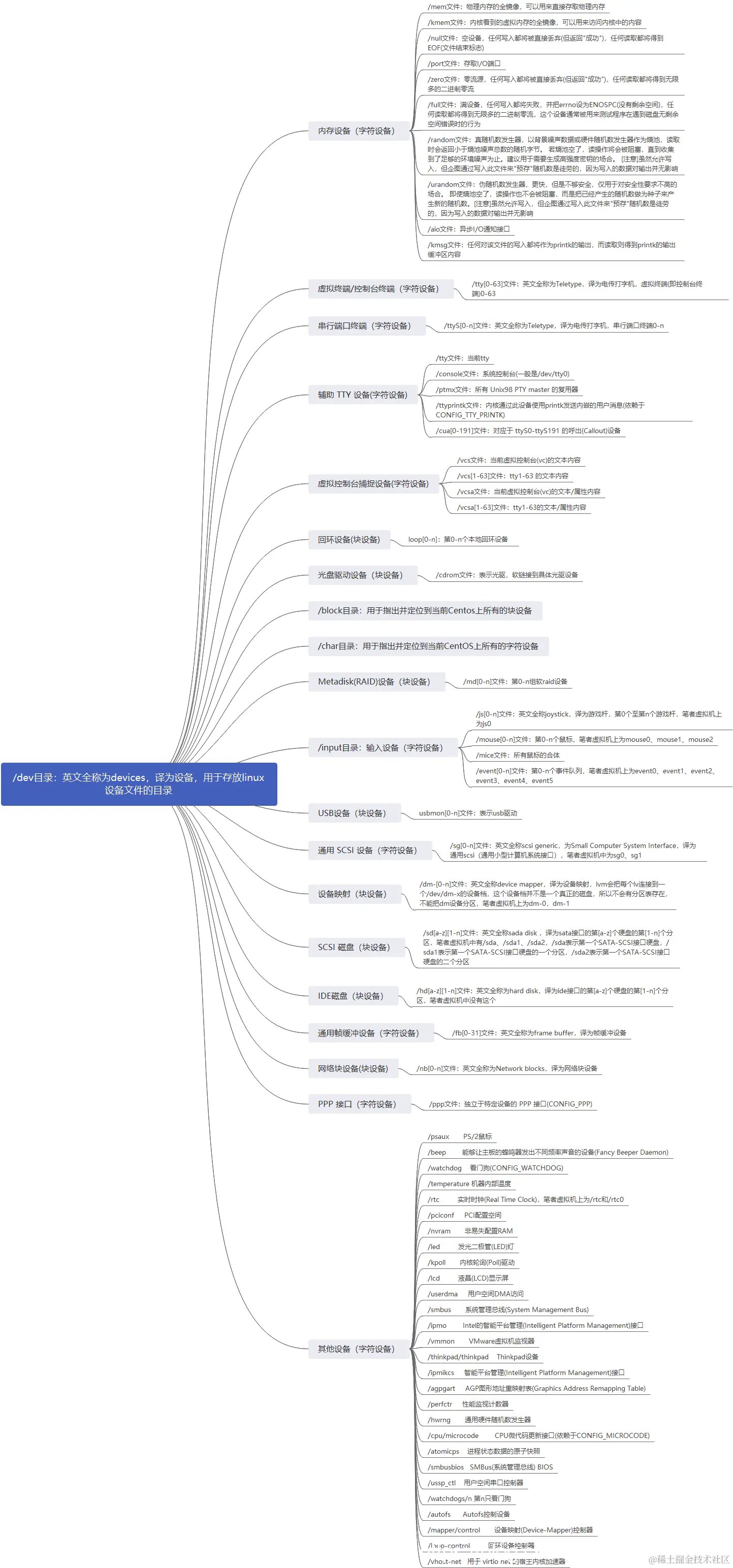 1、内容和作用:用于存放linux设备文件的目录,访问该目录下某个文件,相当于访问某个设备,常用的是挂载光驱mount /dev/cdrom /mnt。