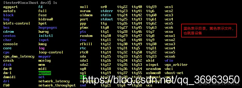 这里笔者根据自己的虚拟机讲解CentOS7中/dev下各个子目录或子文件,如图: