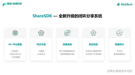 为解决App这一用户运营痛点,MobTech旗下开发者推出的用户裂变解决方案中,【ShareSDK】可通过用户一次次裂变的分享轨迹,利用数据化运营为佐证判断App用户需求,同时形成一套完整的用户画像体系,为后期精细化运营做好铺垫,最终形成有效地转化沉淀。