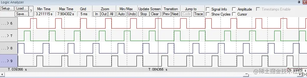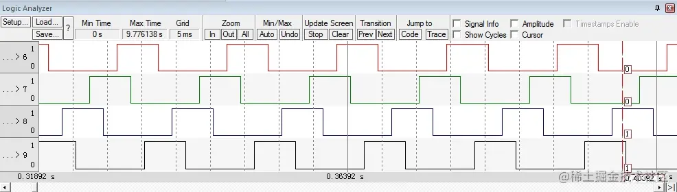 这样看来驱动电机是很简单的用keil模拟的仿真波形